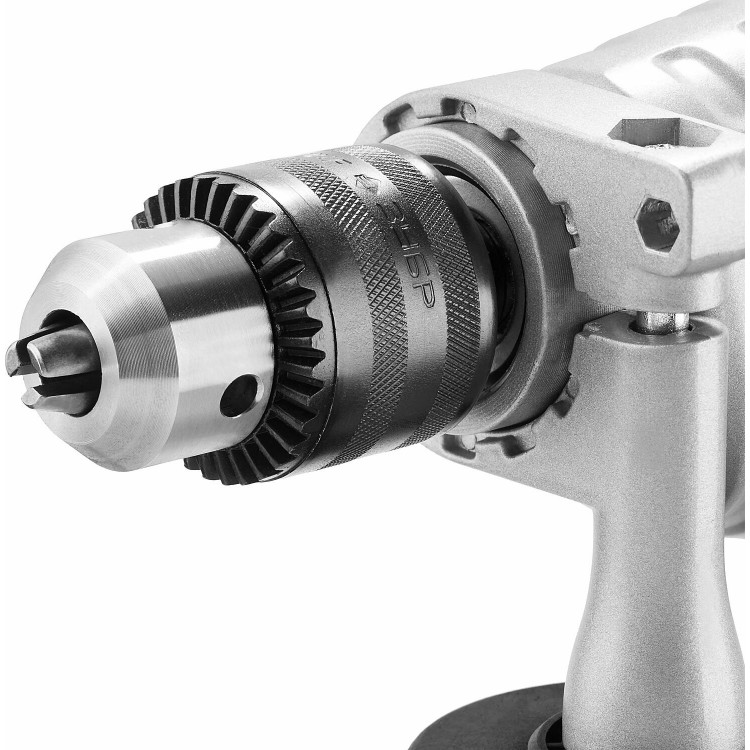 Среди функций дрели — миксер, реверс и регулировка частоты вращения. Блокировка кнопки включения, дополнительная рукоятка и ограничитель глубины сверления делают работу с инструментом удобной и безопасной.