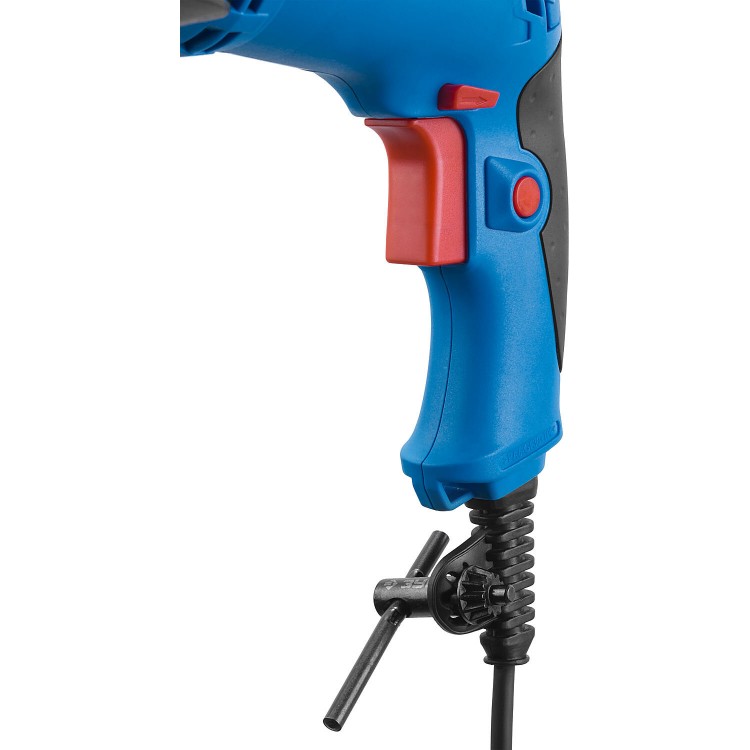 Дрель оснащена ключевым патроном, что обеспечивает надёжное крепление оснастки. Благодаря двум скоростям работы и возможности регулировки частоты вращения вы сможете подобрать оптимальный режим для любых задач.