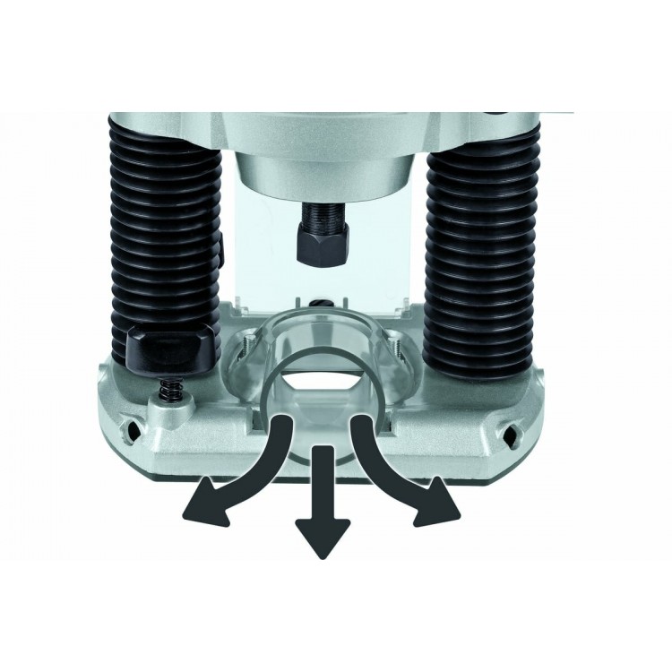 Фрезер упакован в надёжную коробку. Также в комплекте вы получите переходник отсоса, остриё циркуля, направляющую гильзу, параллельный упор, вилочный ключ, натяжной зажим, защитную крышку и оригинальное руководство по эксплуатации.