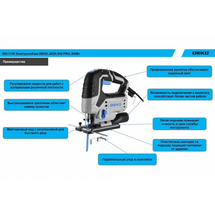 | Название | Электролобзик DEKO JSDK-850 PRO, 850Вт 085-1159 |