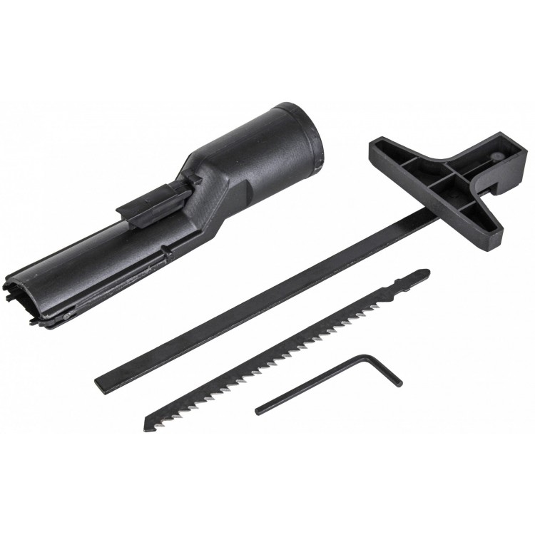 - Конструкция: скобовидная рукоятка, быстрозажимное крепление пилки, возможность подключения пылесоса, лазерный маркер.