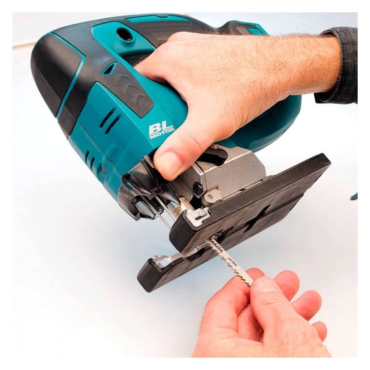 Минимальные вибрации, тихий, мощный, энергоэффективный, быстрозажимное крепление пилки.