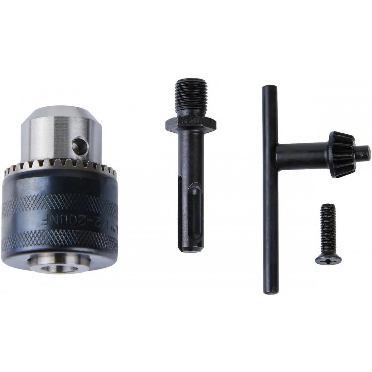 В комплекте с перфоратором вы получите дополнительную рукоятку, ограничитель глубины сверления, патрон ЗВП, адаптер патрона, ключ патрона ЗВП и жёсткий кейс.
