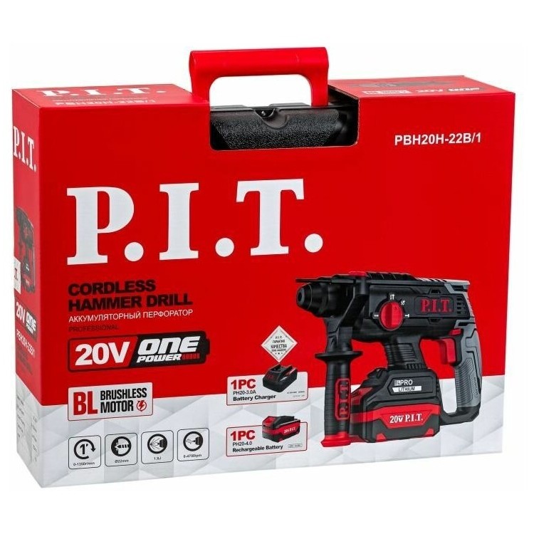 Ищете надёжный перфоратор для работы с бетоном, деревом и другими материалами? Обратите внимание на модель PBH20H-22B от PIT. Этот трёхскоростной аккумуляторный перфоратор с питанием от батареи напряжением 20 В имеет силу удара 1,8 Дж, что обеспечивает высокую эффективность работы.