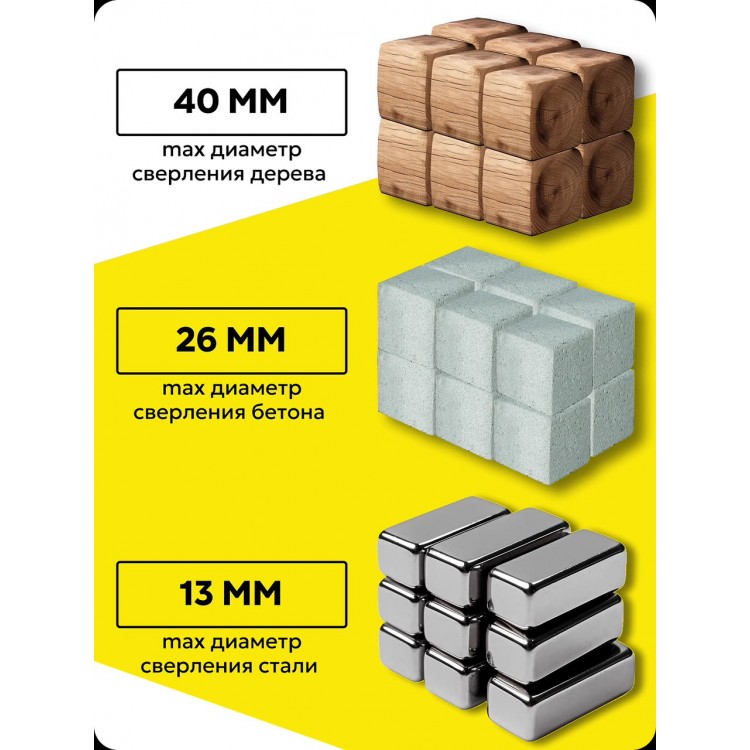 | Макс. диаметр сверления (дерево) | 40 мм |
