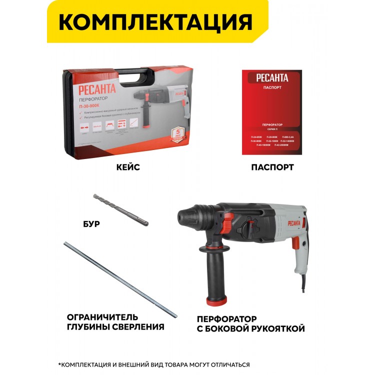 | Название | Перфоратор электрический Ресанта П-30-900К, 900Вт, 4.3 Дж, SDS-Plus, в кейсе |