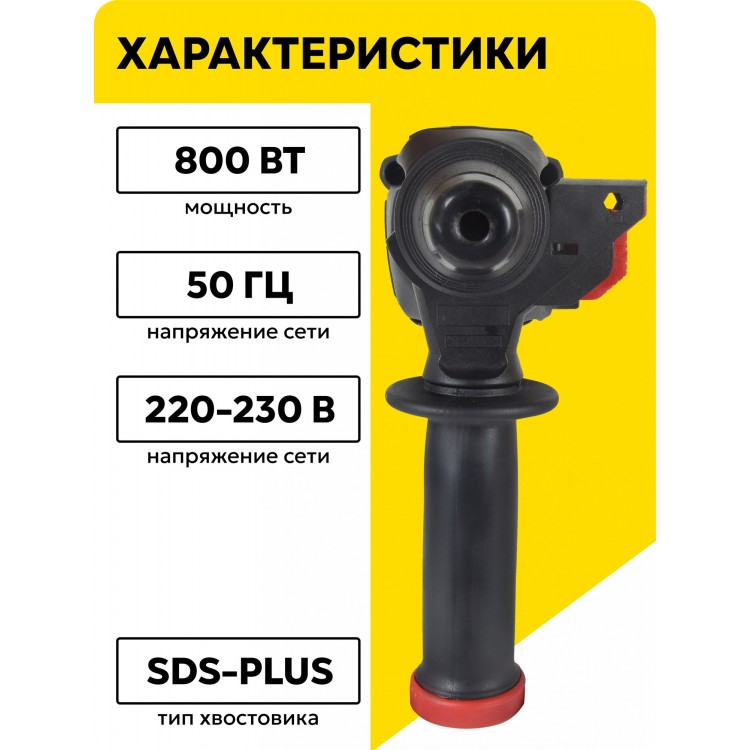 Перфоратор оснащён одной скоростью работы и имеет мощность 800 Вт.