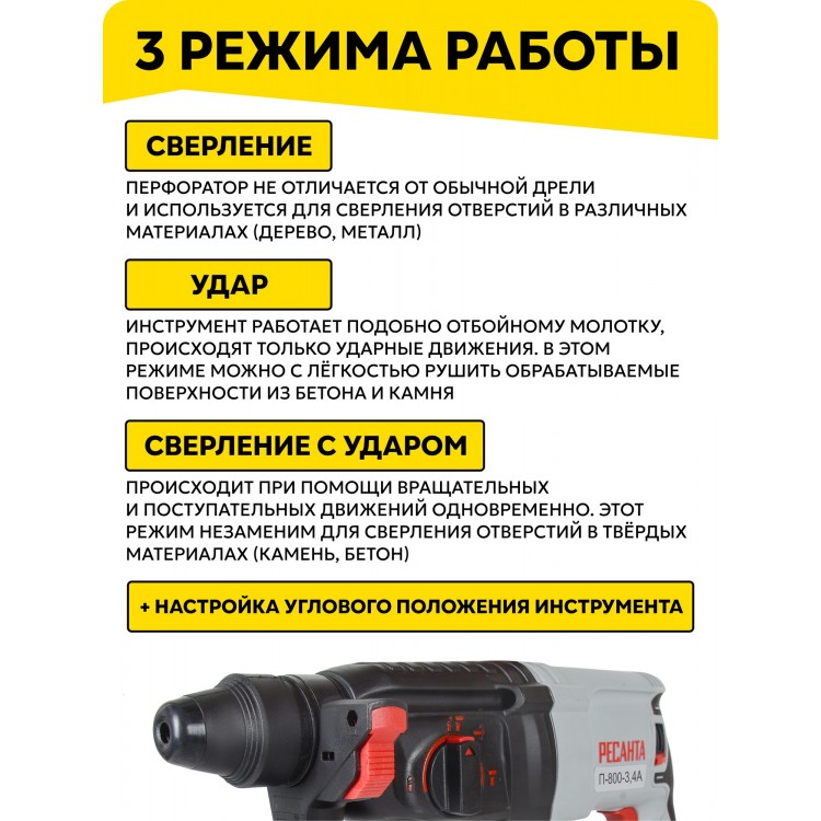 | Название | Перфоратор Ресанта П-800-3,4А, SDS-Plus, 800 Вт, электрический |
