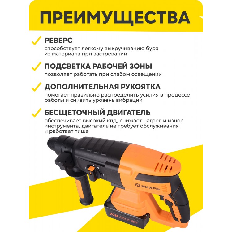 Закажите перфоратор Вихрь АП-20Li/4 (72/3/20) в интернет-магазине NicePrice62 прямо сейчас и убедитесь в его качестве и надёжности!