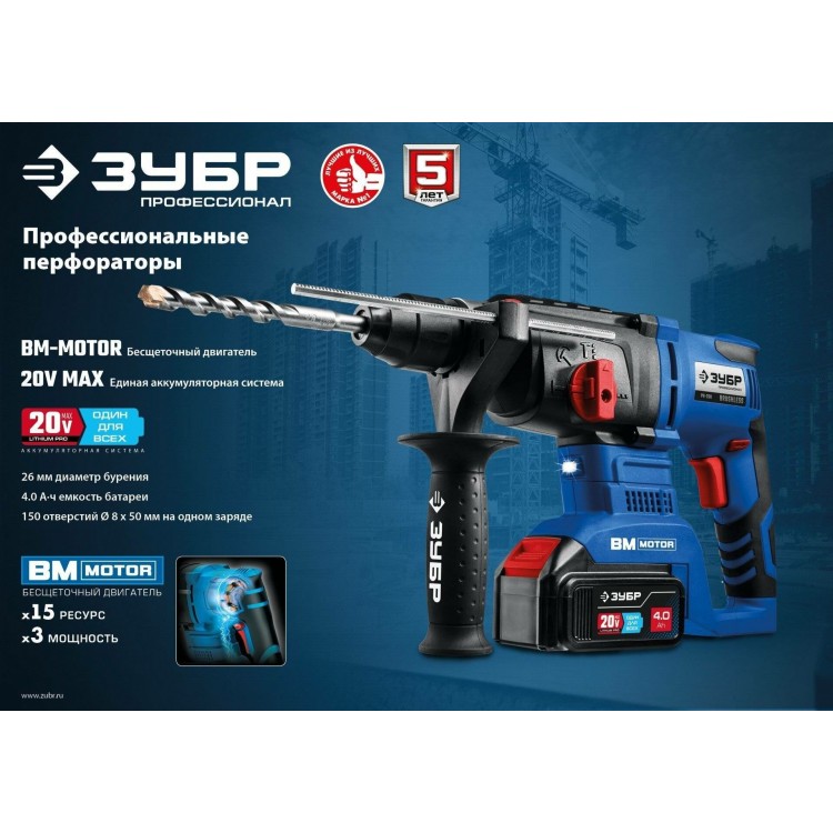 | Название | Аккумуляторный бесщеточный перфоратор Зубр PB-260-42 |