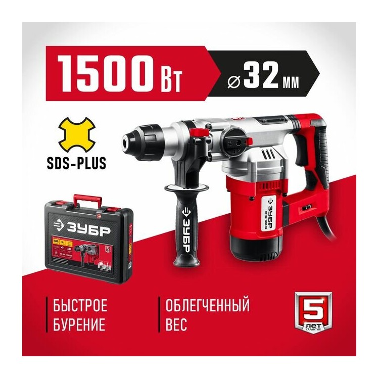 | Название | Перфоратор сетевой SDS-plus Зубр ПВ-32-1500 ЭВ, 1500Вт, 32мм, 5Дж |