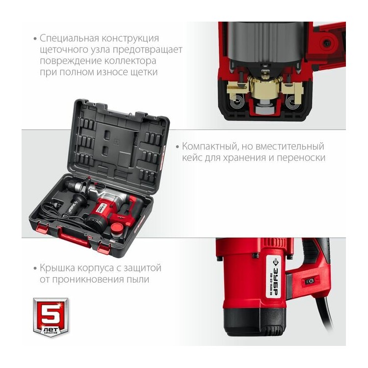 Перфоратор ЗУБР ПВ-32-1500 ЭВ также имеет ряд полезных особенностей, которые делают его ещё более удобным в использовании: