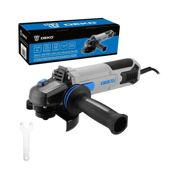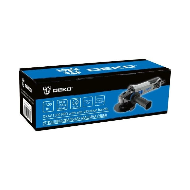 | Название | Углошлифовальная машина Deko DKAG1300 PRO 1300Вт 12000об/мин рез. шпин: M14 d=125мм (085-1055) |