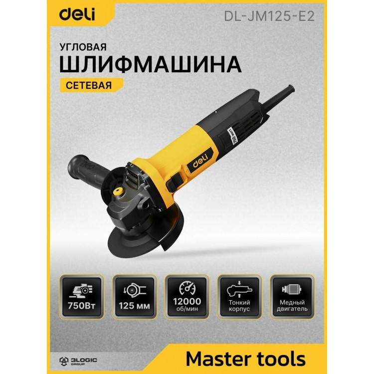 НазваниеУгловая шлифмашина сетевая Deli DL-JM125-E2 (750Вт, 125мм, 12000об/мин, картон)