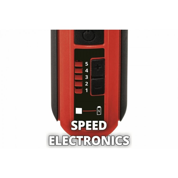 Инструмент работает от аккумуляторной системы Einhell Power X-Change. В комплекте идёт один аккумулятор напряжением 7,2 В и зарядное устройство на 1 аккумулятор.