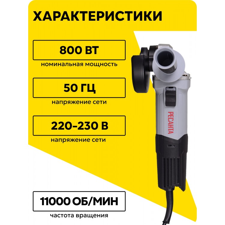 | Название | Болгарка 115мм, углошлифовальная машина, Ресанта УШМ-115/800, 800Вт |