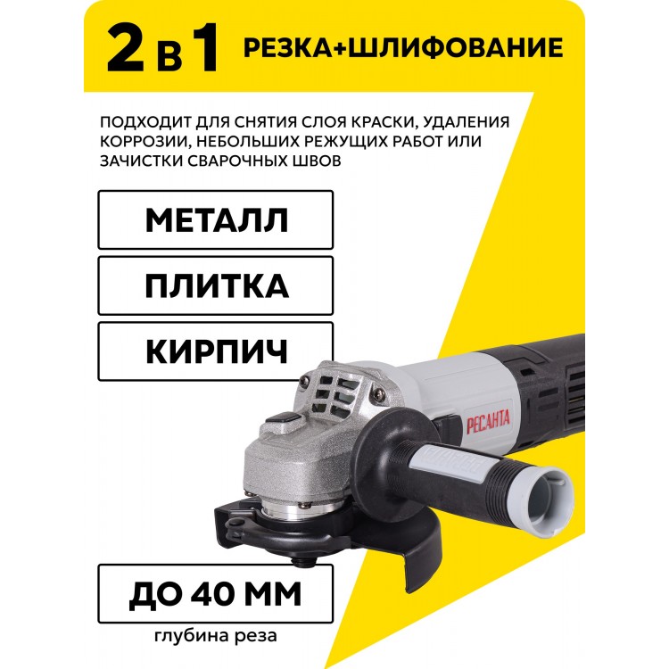 Отлично режет и шлифует металл, без проблем справляется с заготовками средней толщины. Удобно лежит в руке, нет дискомфорта при длительном использовании.