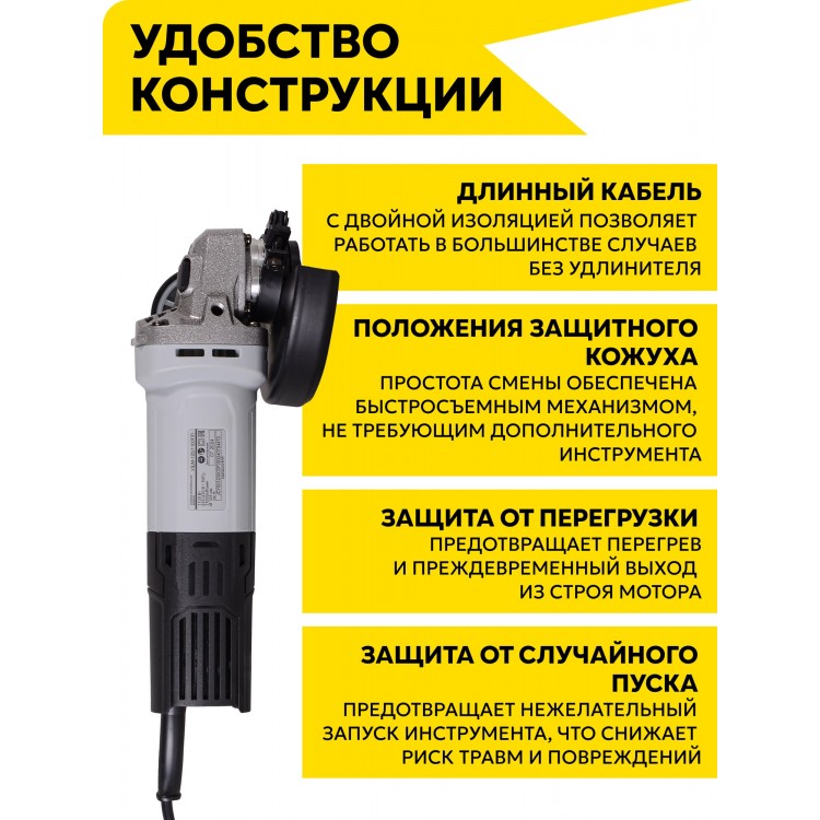 В работе оказался вполне хорош. Мощности хватает для большинства задач. При замене диска удобно, что есть блокировка шпинделя. Не пришлось мучиться с откручиванием. Основной момент — это безопасность. Есть защитный кожух, и провод длинный, без удлинителей вообще не пришлось работать. Однако при продолжительной работе, например, на больших поверхностях, заметил, что перегревается, и нужно делать перерывы. Но для таких задач, как резка или шлифовка небольших деталей, вполне хватает.
