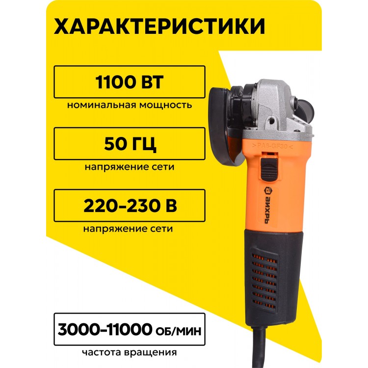 | Название | Болгарка 125мм, углошлифовальная машина, Вихрь УШМ-125/1100Э, 1100 Вт |