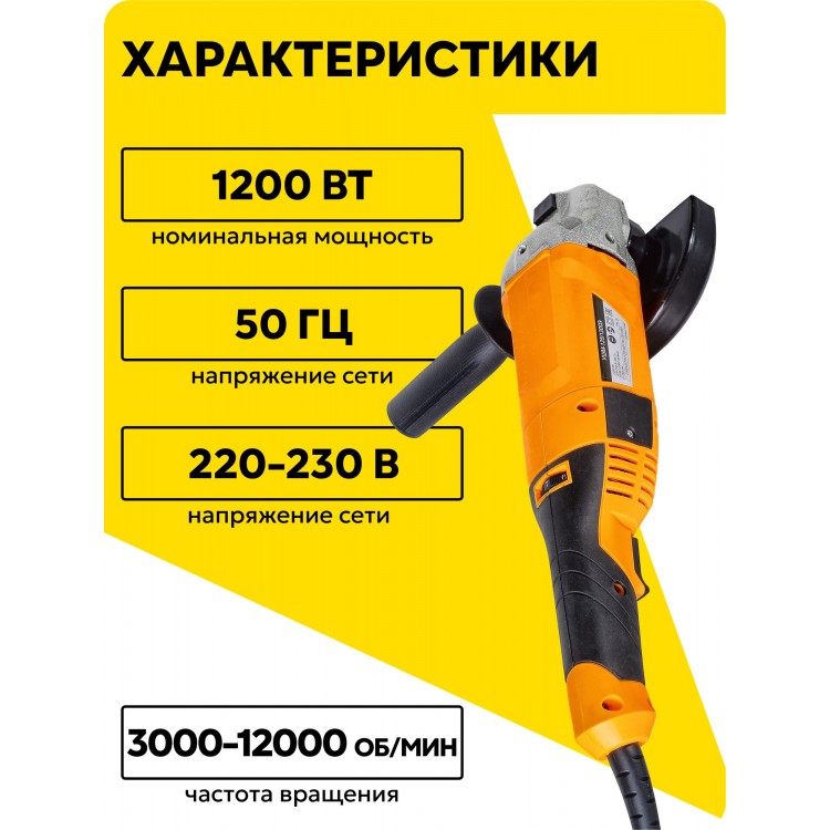 | Название | Болгарка 120мм, углошлифовальная машина, Вихрь УШМ-125/1200Э, 1200 Вт |