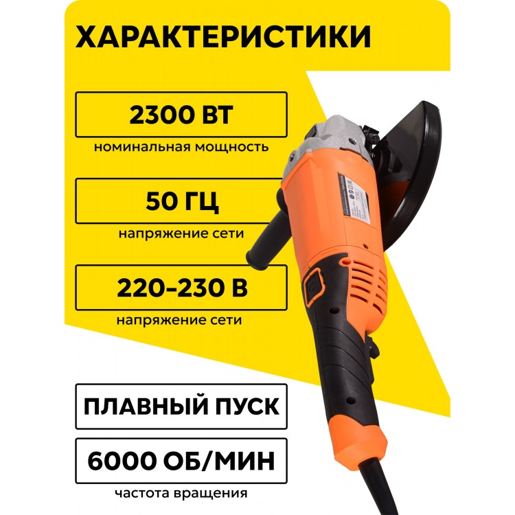 | Название | Болгарка 230мм, углошлифовальная машина, Вихрь УШМ-230/2300, 2300 Вт |