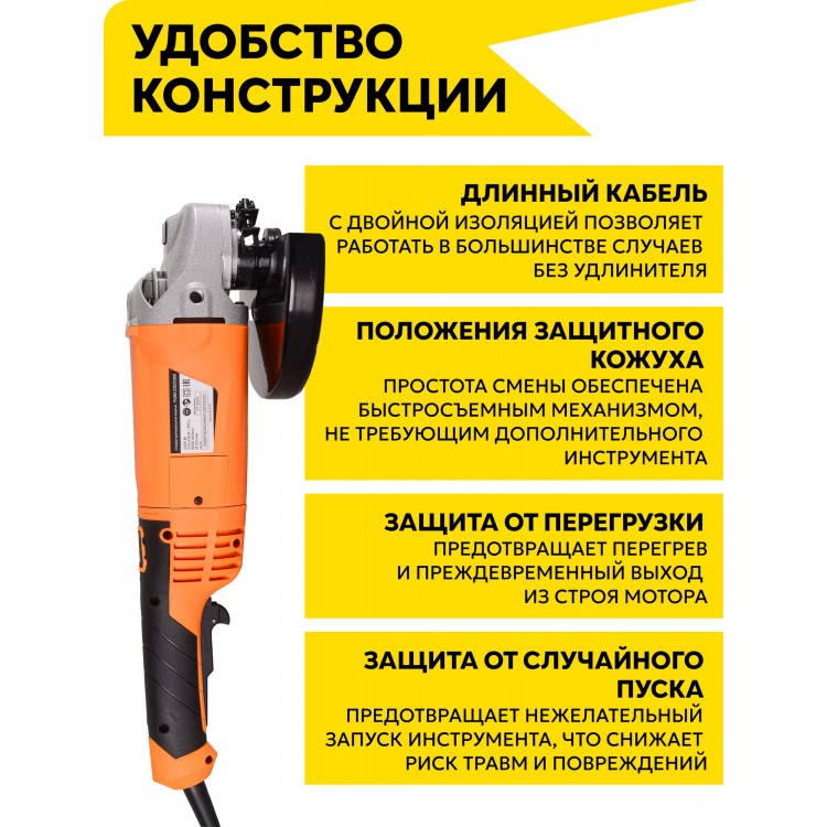 УШМ-230/2300 также имеет дополнительные функции, которые делают работу ещё более комфортной и эффективной: