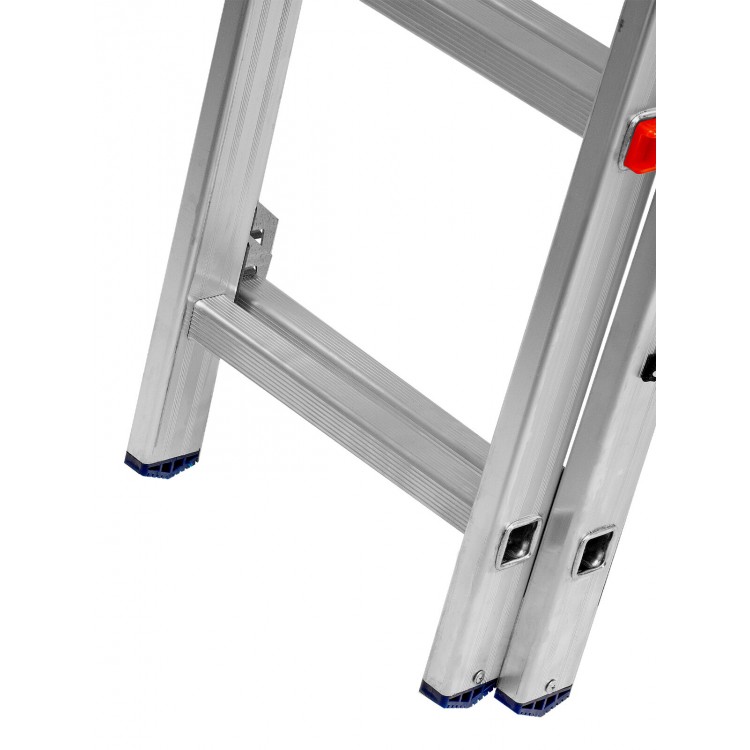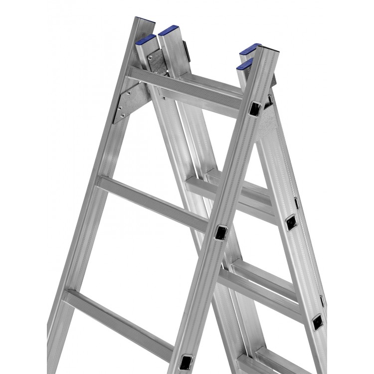 Отличная крепкая лестница, устойчивая. Моя помощница, в меру тяжелая, я спокойно перемещаю её по участку.