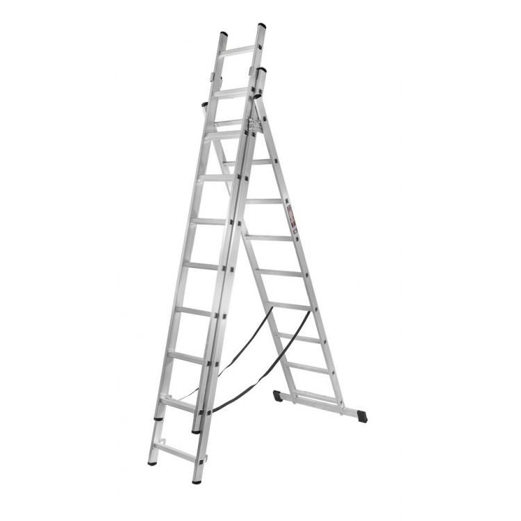 Долго выбирал себе лестницу, чтобы и надежная была, и функциональная. Остановился на этой трехсекционной. Лестница легкая, из алюминия, но при этом устойчивая, не шатается. Можно использовать и как приставную, и как стремянку. Единственное – в разложенном виде, конечно, место нужно, чтобы её разместить. А так – отличная лестница для дома и дачи.