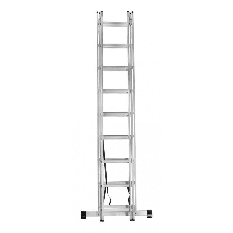 На даче такая трехсекционная лестница. Выручает в быту однозначно. Выдерживает нагрузку до 150 килограмм. Корпус из алюминия, не ржавеет. Оставляю спокойно её на улице. Ножки не скользят, есть пластиковые наконечники, устойчивость очень хорошая. Складывается и выглядит довольно компактно.