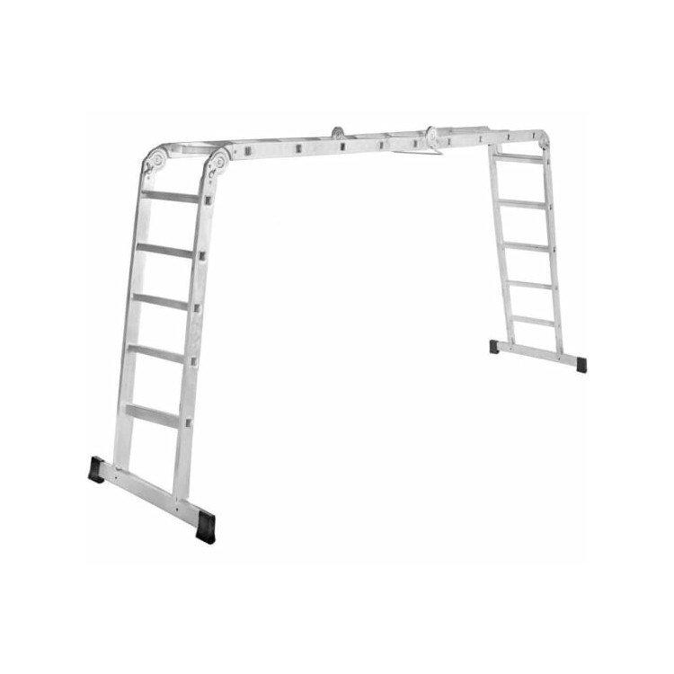Когда начал делать ремонт в доме, пришлось искать что-то универсальное, чтобы не таскать несколько лестниц. Эта модель подошла идеально. Занимает мало места в сложенном виде, а в разложенном варианте легко выполняет роль как приставной лестницы, так и стремянки. В какой-то момент даже поднимал потолочные панели - проблем с конструкцией не было. Единственный момент: на неровном полу нужно быть аккуратным, иначе чувствуется небольшая раскачка. В целом, достойный инструмент для домашнего использования, не жалею о покупке.