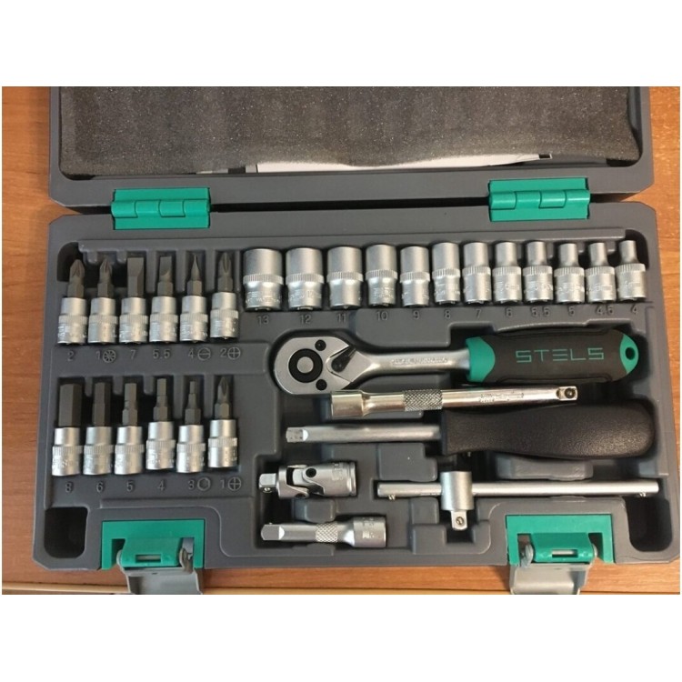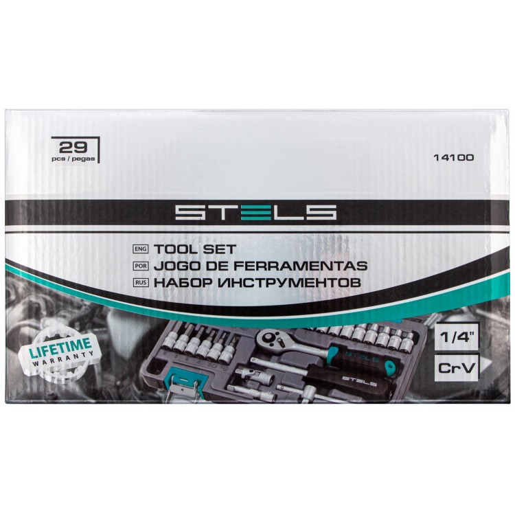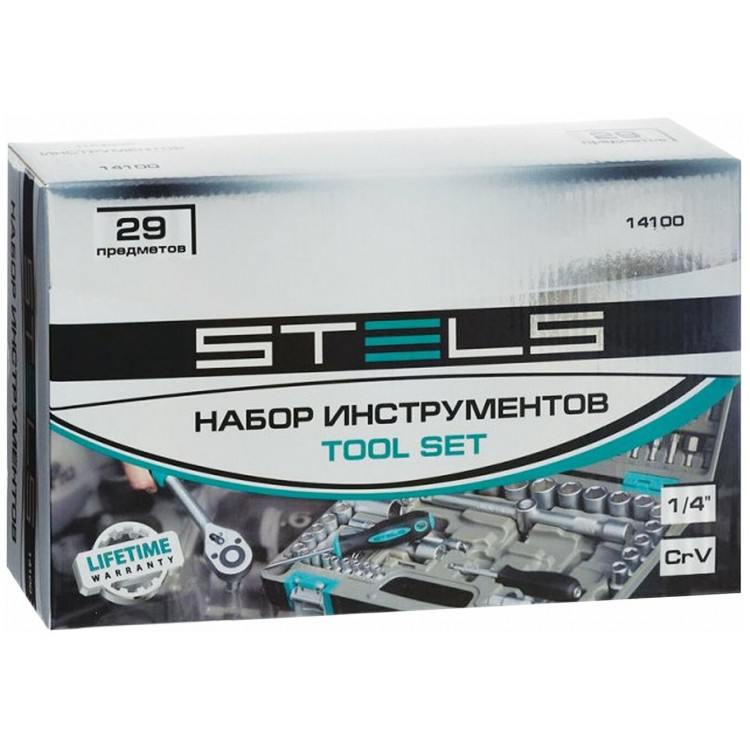 Название Для слесарных, ремонтных и точных работ Stels 14100, 29 предм.; Бренд Stels; Цвет товара черный; Тип набор инструментов; Количество предметов 29 шт; Инструменты в комплекте вороток для головок, ключ разводной, ключи гаечные, ключи имбусовые (шестигранные), ключи торцевые, отвёртки, пассатижи, плоскогубцы, рукоять для бит, рукоять для головок, трещотка, Вороток Т-образный, Вороток для головок,Рукоять для бит,Рукоять для головок,Трещотка, Головки торцевые, Кардан, Ключ трещоточный, Отвертка-держатель, Удлинители; Оснастка в комплекте головки со вставками, торцевые головки; Аксессуары в комплекте удлинитель для головок, шарнир карданный для головок, кейс, удлинитель; Кейс (сумка) в комплекте есть; Шлицы бит крестообразный (PH), крестообразный (PZ), прямой (SL); Количество торцевых головок 24 шт; Тип головок торцевые, со вставками, 6-гранные; Наконечник головок 6-гранный; Наконечник головок со вставками 6-гранный; Посадка головок ¼"; Мин. размер торцевых головок 4 мм; Макс. размер торцевых головок 13 мм; Головки торцевые подробно 1/4": 4, 4.5, 5, 5.5, 6, 7, 8, 9, 10, 11, 12, 13, со вставкой: H3, H4, H5, H6, H8, SL4, SL5.5, SL7, PH1, PH2, PZ1, PZ2; Тип гаечных ключей комбинированный, накидной, трещоточный, Torx, Торцевой, Универсальный, Шестигранный (имбусовый); Гаечные ключи подробно Ключ трещоточный 1/4";; Дополнительная информация ключ трещоточный 1/4'', кардан 1/4'', удлинитель 1/4'' 50 мм, отвертка-держатель 1/4'', вороток Т-образный 1/4''; Ширина кейса 160 мм; Высота кейса 55 мм; Толщина кейса 55 мм; Вес набора 1.21 кг; Количество упаковок 1 шт; Цвет серый;