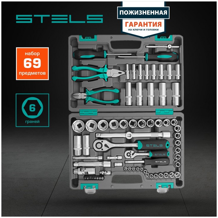 Набор инструментов STELS 69 предметов 14108 — незаменимый помощник в автомастерской и для водителя.