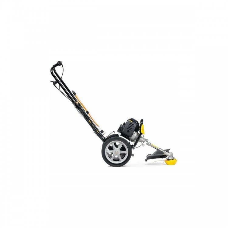 Мощный и удобный в использовании на неровных участках, хорошо справляется с высокой травой и бурьяном. Колёса позволяют легко передвигать по участку.