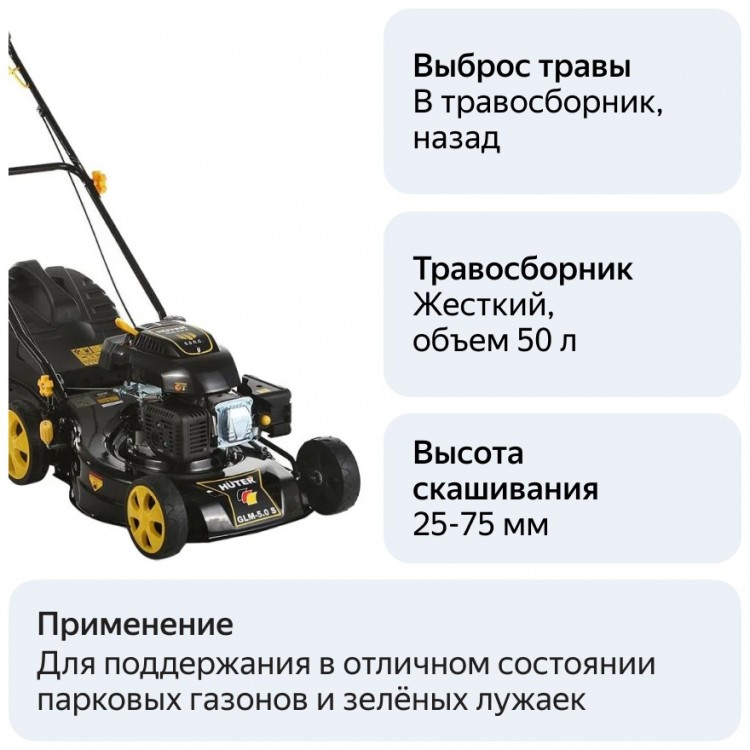 Максимально облегчил себе жизнь с помощью газонокосилки Huter. Доволен, что не сэкономил на приводе, взял самоходную модель, теперь не приходится прикладывать физических усилий для продвижения 30 килограммовой техники вперед. Ширина скоса почти полметра, поэтому всю работу по облагораживанию газона на 1000 квадратных метрах делаю быстро. В добавок агрегат сам мульчирует траву и ветки. Вместительный травосборник, его не надо очищать каждые 10-15 минут.