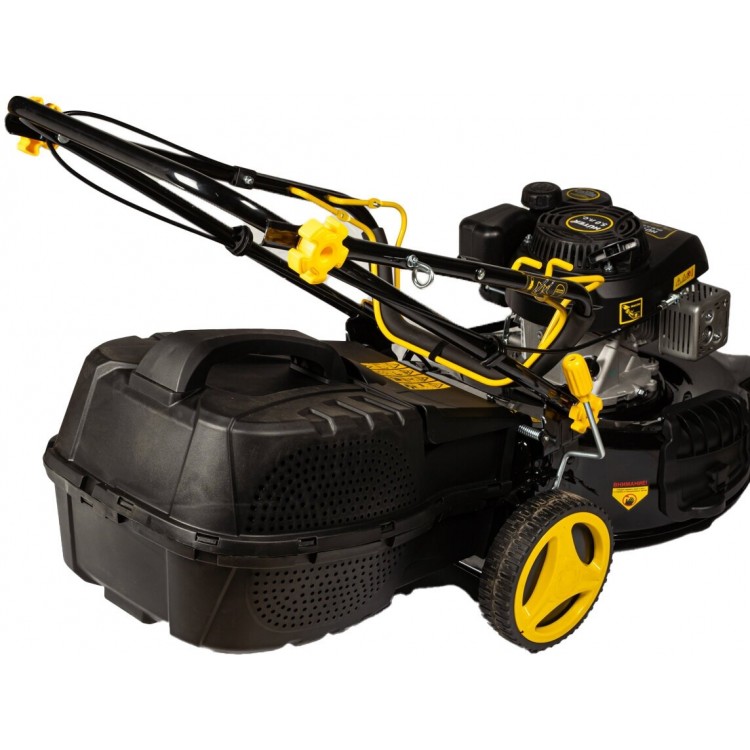 Мощная и крепкая по сборке бензиновая газонокосилка. Не пожалел, что выбрал ее. Участок у меня большой. У газонокосилки хороший ресурс и по двигателю, и по объему топливного бака, и по объему травосборника, и по ширине среза. Высота среза регулируется. Управление несложное. Травосборник не из ткани, а из крепкого пластика — так практичнее.