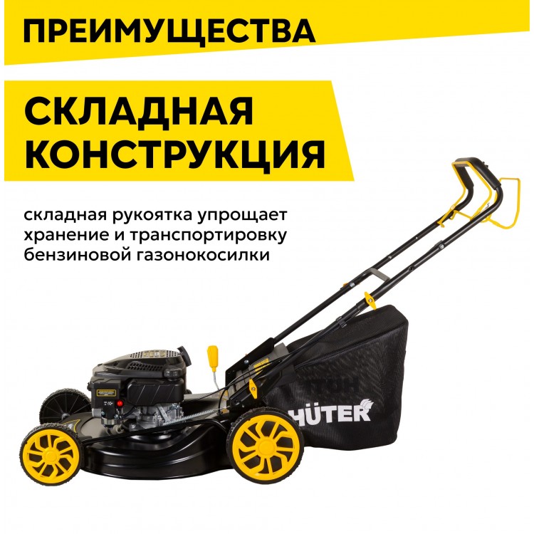 | Название | Газонокосилка бензиновая HUTER GLM-6.0ST, 6л. с./ тканевый травосборник/ функция мульчирования |