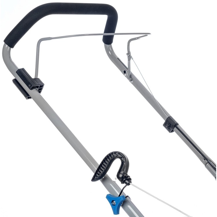 - Складная ручка делает газонокосилку компактной при хранении и удобной при транспортировке.