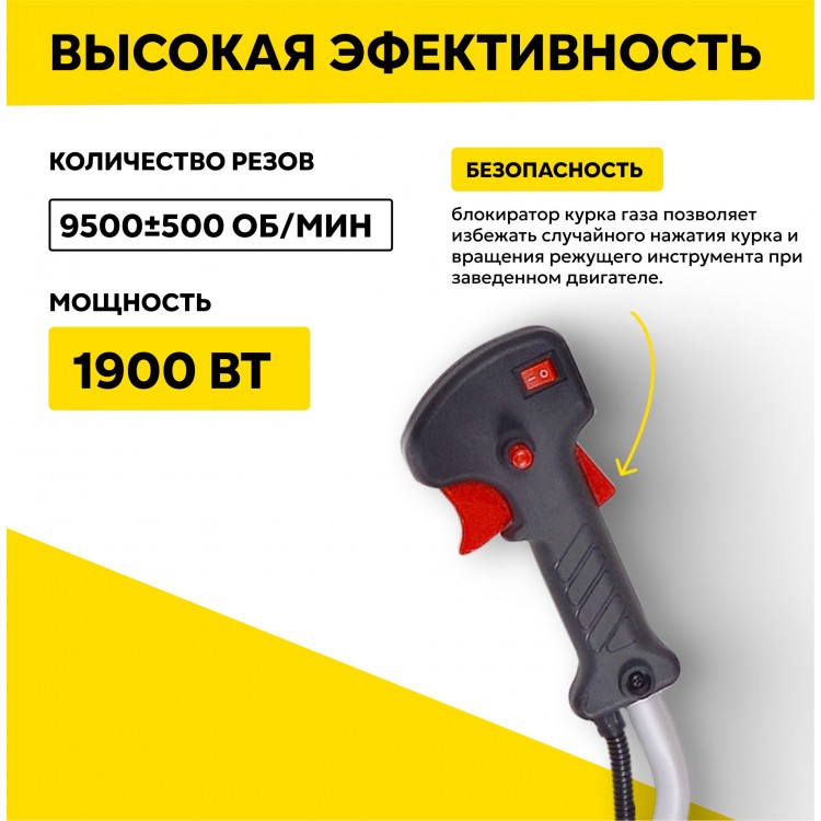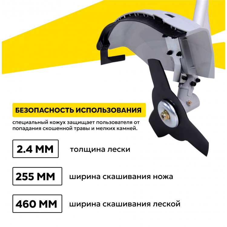 * 3-лопастной диск позволяет эффективно срезать даже жёсткую траву и кустарник.
