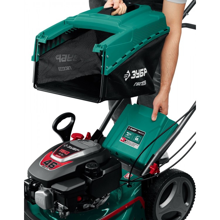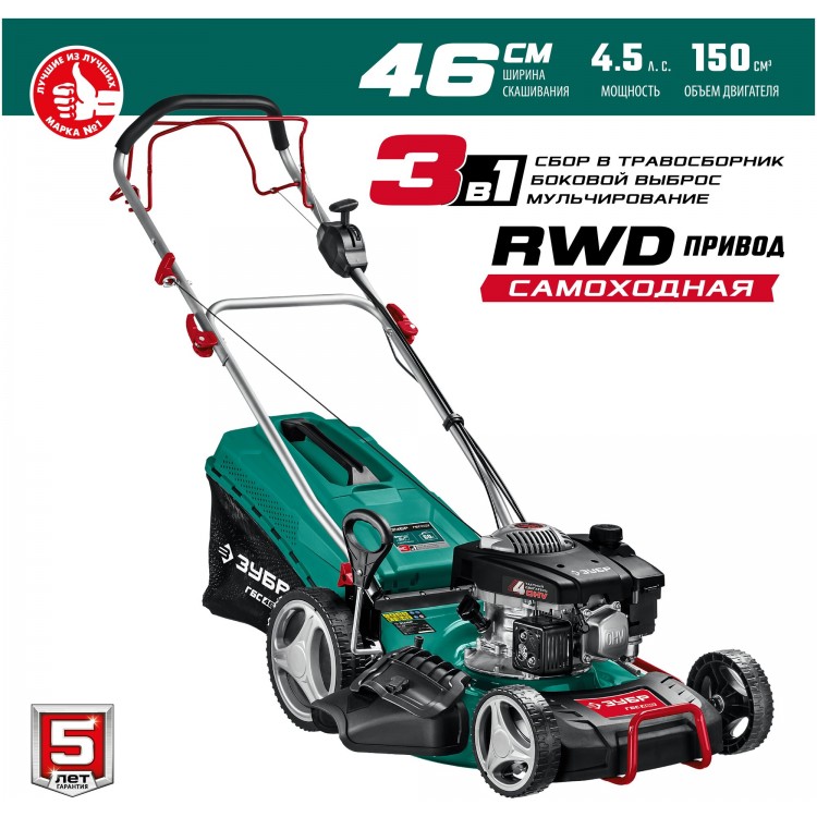 2. Самоходная модель. ЗУБР ГБС-460 оснащена приводом на задние колёса, что обеспечивает удобство управления и высокую эффективность работы.