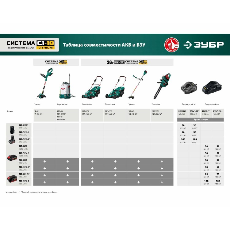 * Производитель двигателя ЗУБР. Гарантирует надёжность и качество.