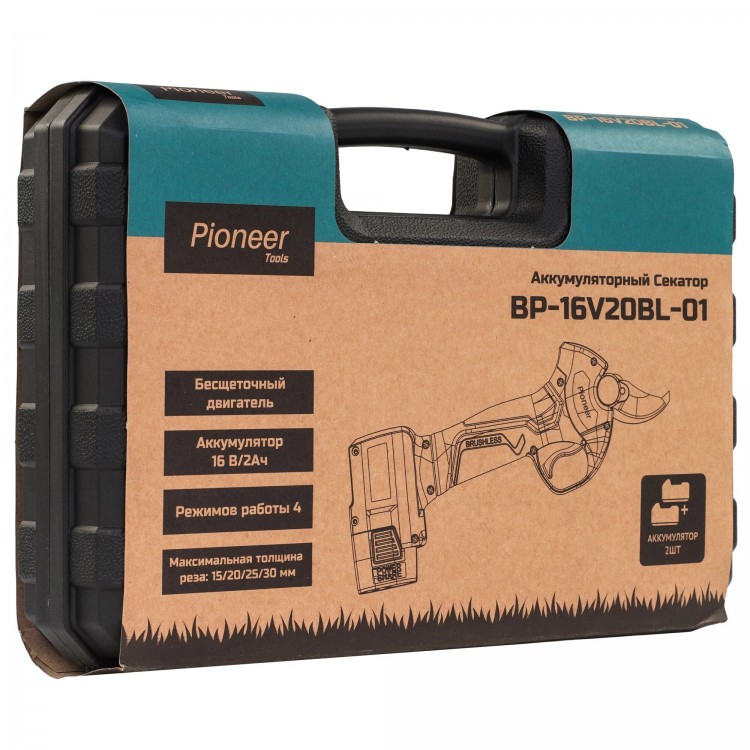 | Название | Секатор аккумуляторный Pioneer BP-16V20BL-01 (2 аккумулятора по 2 Ач) |