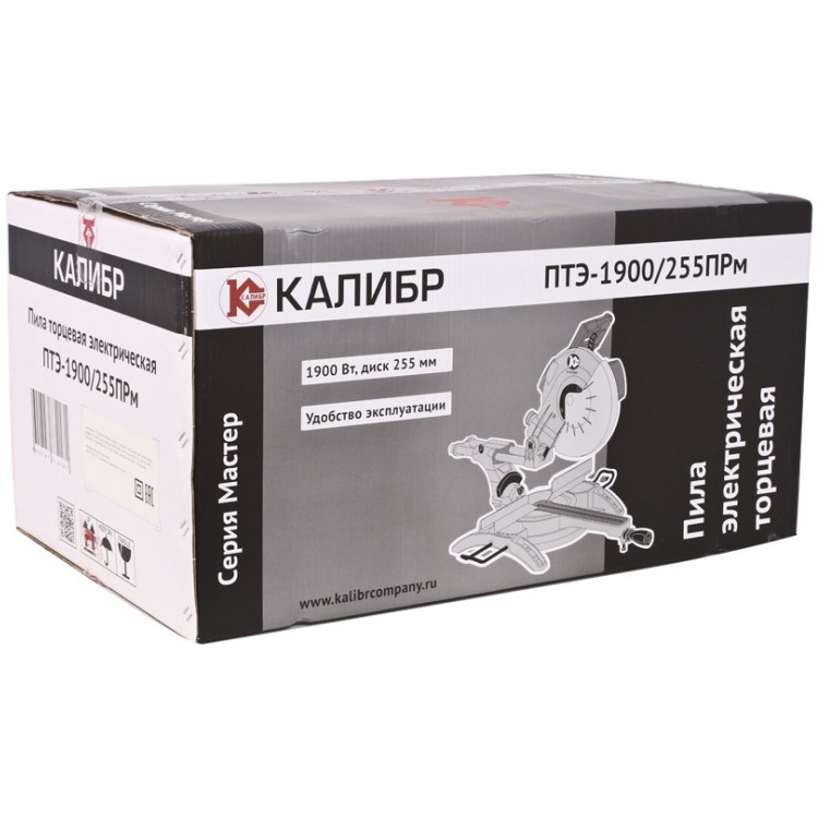 КАЛИБР ПТЭ-1900/255Прм — это мощная торцовочная пила с плавным пуском и регулировкой глубины реза, которая оснащена протяжкой и имеет 3 дополнительные опоры для большей устойчивости.