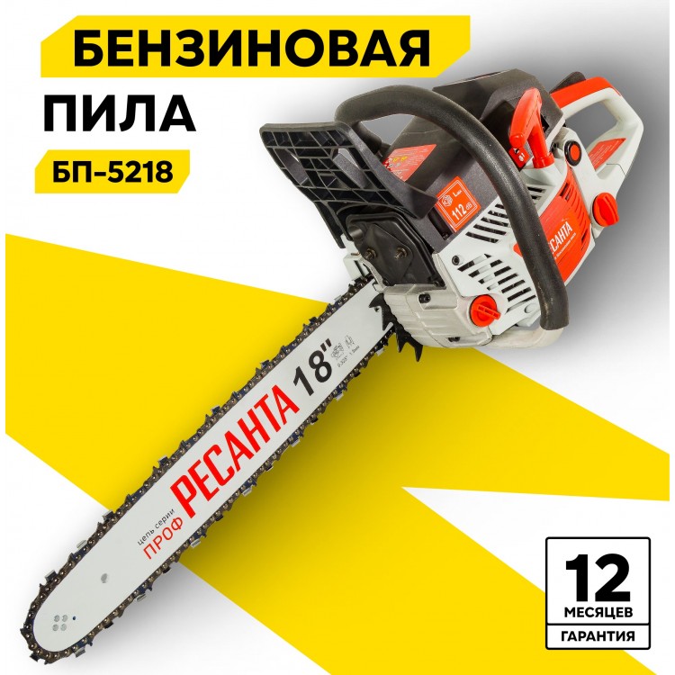 | Название | Бензопила бензиновая Ресанта БП-5218, цепная, 3.8 л. с, 45 см |