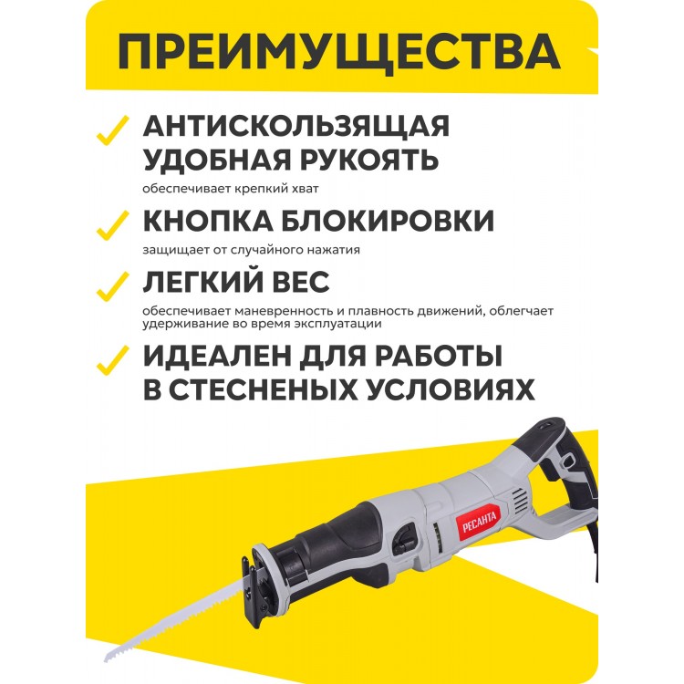 Купите пилу сабельную Ресанта ПС-1400Э в интернет-магазине NicePrice62 в Рязани и наслаждайтесь качественной работой надёжного инструмента!