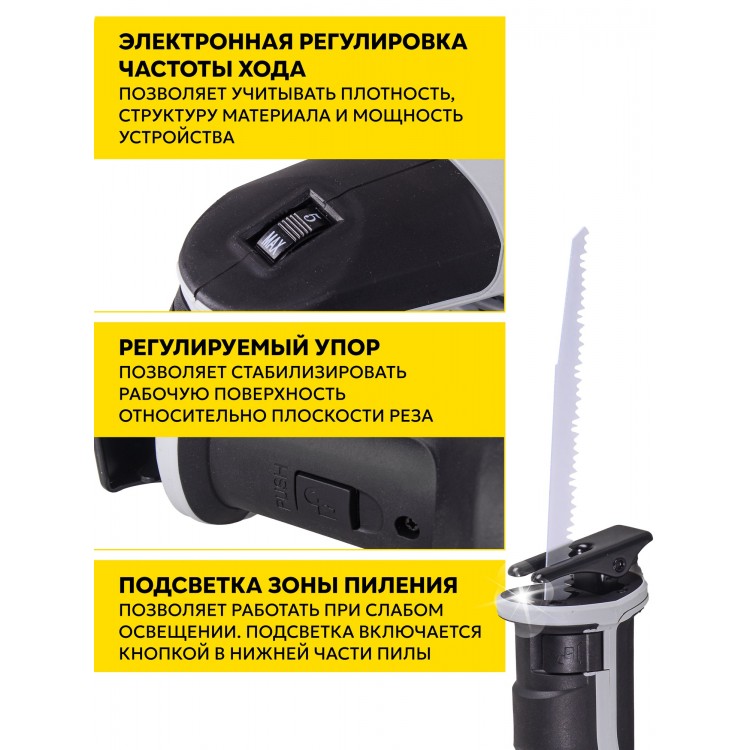 | Комплект поставки | Сабельная пила - 1 шт; Пилка по дереву - 1 шт; Руководство по эксплуатации |