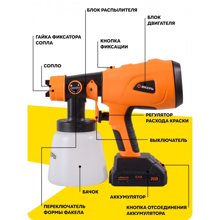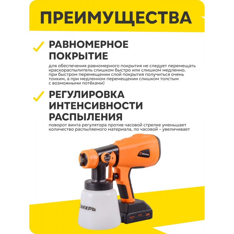 | Название | Краскопульт аккумуляторный АКП-20Li Вихрь (72/17/5) |