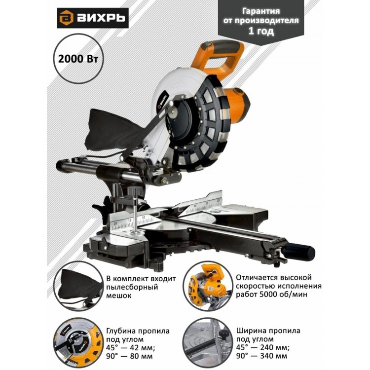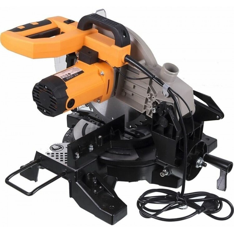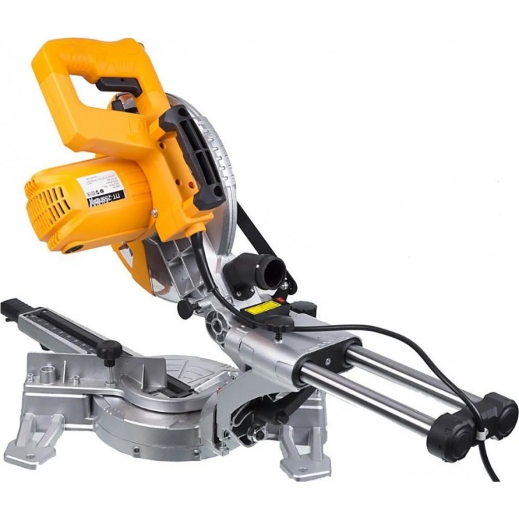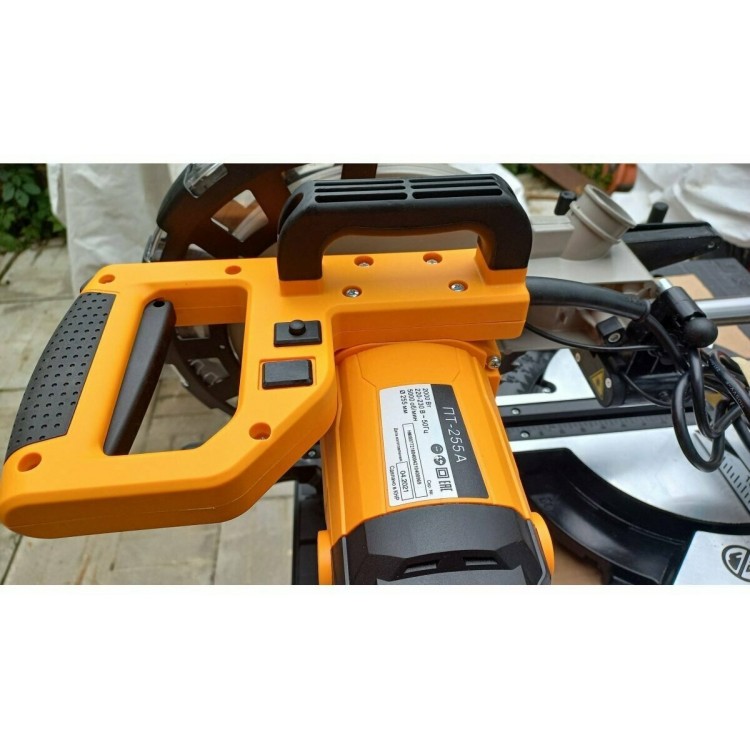 Хорошая вещь. Мощность у нее 2000 ватт – это вам не игрушки. Диск большой, 255 миллиметров, пилит дерево как по маслу, чик-чик и готово! Глубина пропила аж 80 миллиметров, это очень даже хорошо, можно брус толстый пилить. Обороты тоже приличные, 5000 в минуту – пилит быстро и ровно. У нее там всякие примочки есть, типа протяжки, чтоб доску широкую пилить, и лазерный указатель, чтоб точно отрезать. Удобно, что есть возможность пылесос подключить, опилки не летят во все стороны.