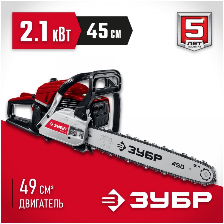 | Название | Бензопила ЗУБР 49 см3 2,9 лс 45 см шина 72 звена 0,325 дюйм 550 мл бак 260 мл масло 5,8 кг |