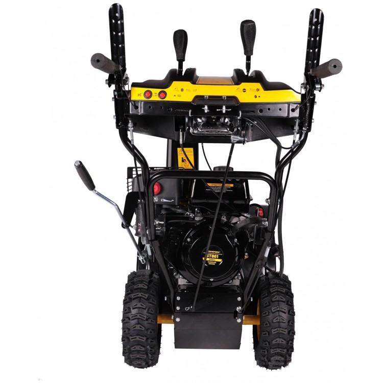 | Особенности | датчик уровня масла, наличие фары, реверс, рукоятки с подогревом, Автоматическое отключение при недостаточном уровне масла, Блокировка от случайного включения, Колеса, Снегоотбрасыватель, Снегоотвал, Электростартер, блокировка рычага включения шнеков. Регулировка положения выброса снега и положения жел, обогрев рукояток. Обрезиненные рукоятки, фара, фары |