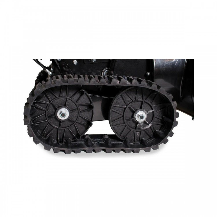 Гусеничный привод обеспечивает отличную проходимость и устойчивость на различных поверхностях. Шнек с зубчатой формой и металлический желоб гарантируют эффективное удаление снега.